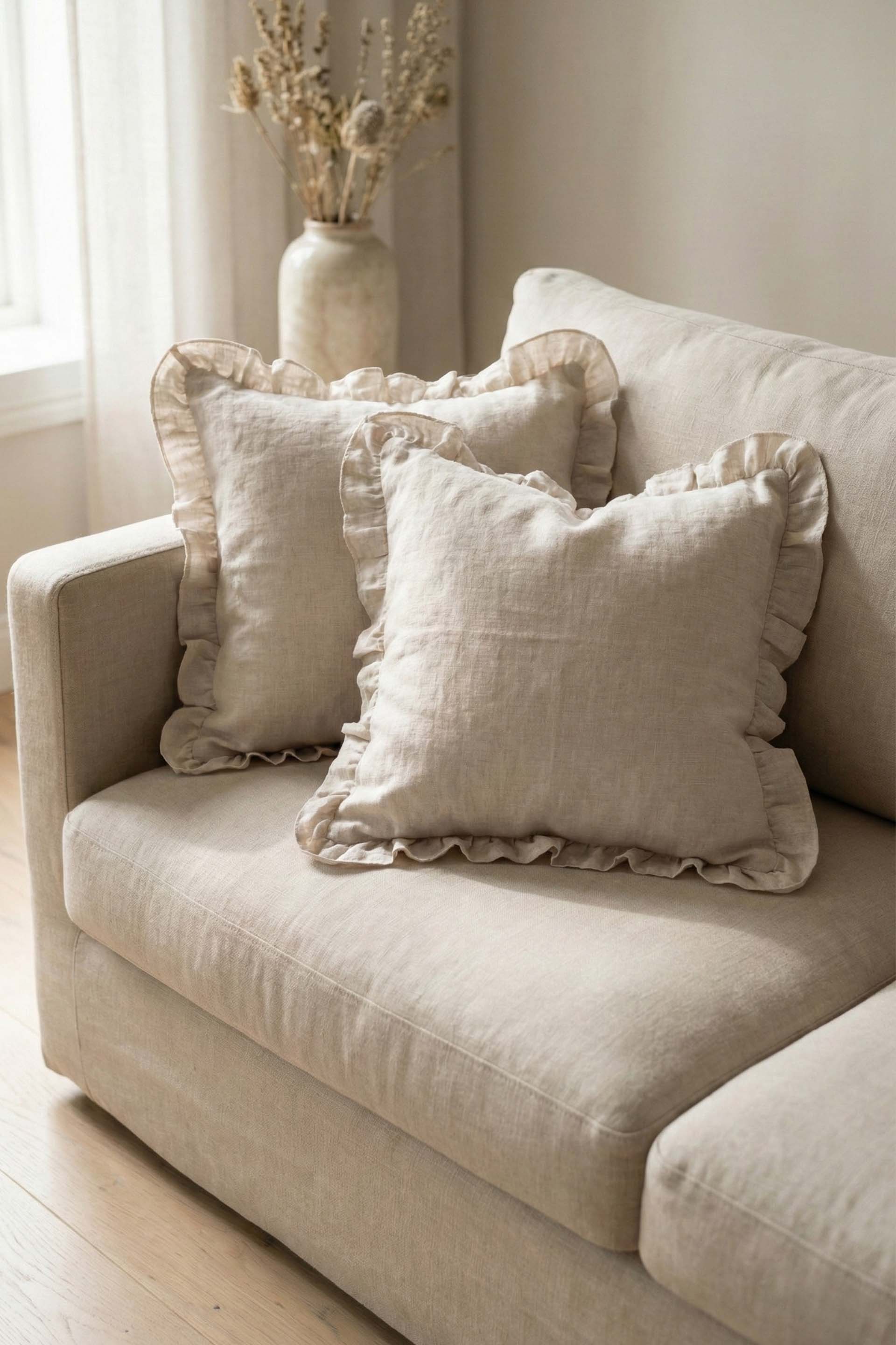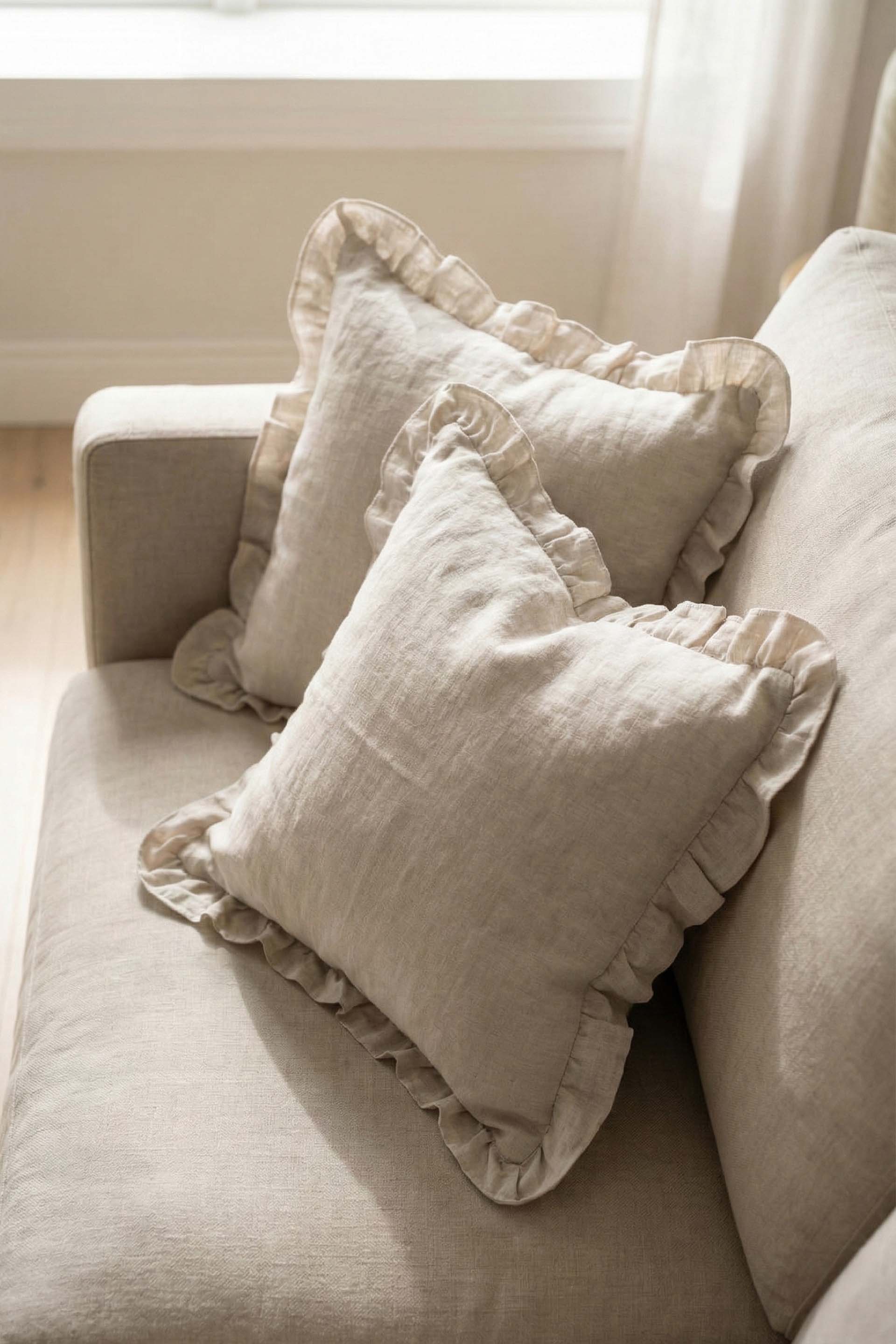 Lona Keten Fırfırlı Kırlent Kılıfı 2'li 40x40